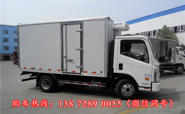 整车型号:BJ5043XLC-J7型冷藏车,搭载全柴115马力柴油发动机,2.5L排量,国五排放标准,单排1.86米宽驾驶室,五档变速箱,7.00R16钢丝胎,方向盘带助力,电控熄火,汽刹带ABS。